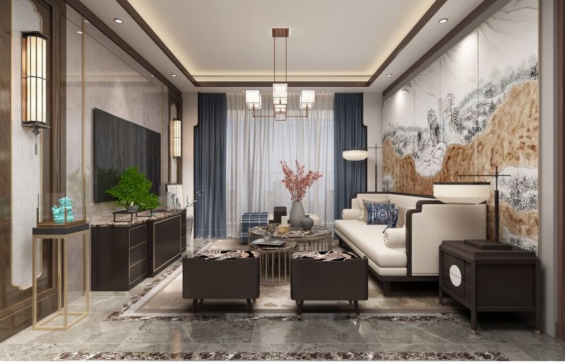 【骋望君玺】112平中式风格三居设计案例