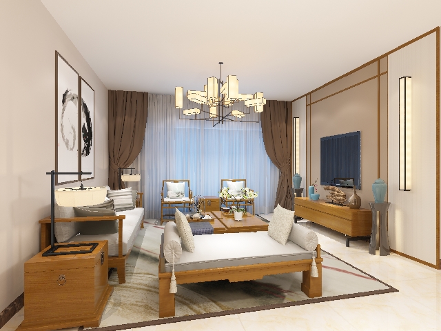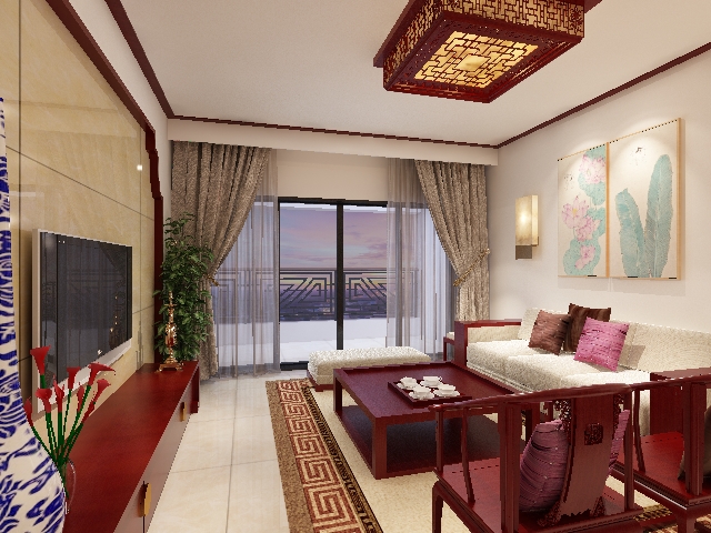 盛帮领地中式风格三室两厅120平米装修案例