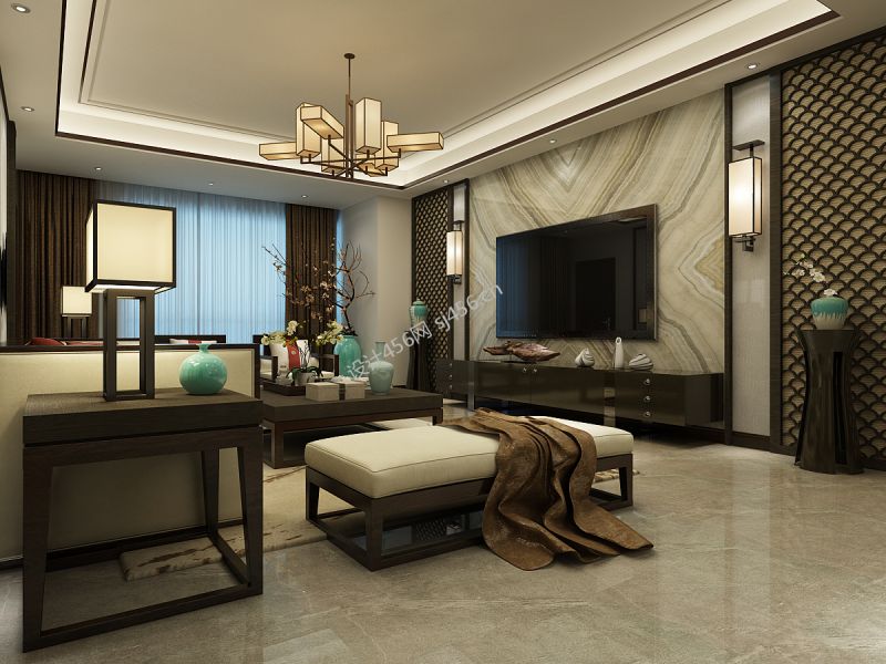 蓝色康桥A区二期156平新中式装修效果图风效果图