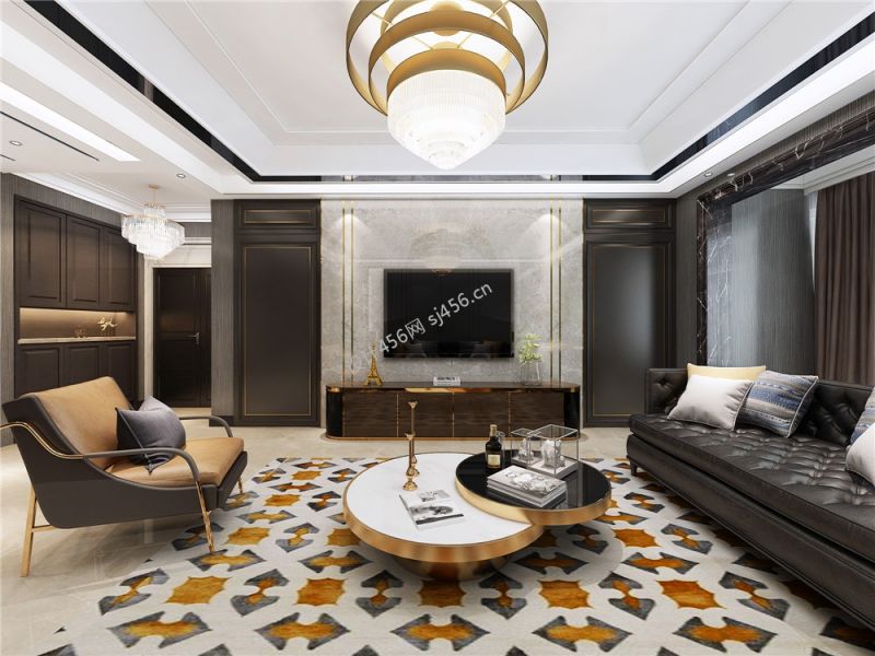盘锦方林装饰-盘锦广厦领域160平黑白灰装修案例-效果图-盘锦装修公司风效果图