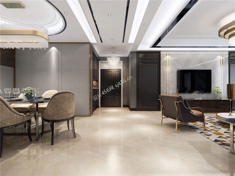 盘锦方林装饰-霞光府壹号院140平现代简约装修案例-效果图-盘锦装修公司风效果图
