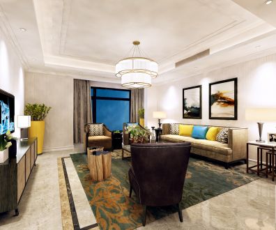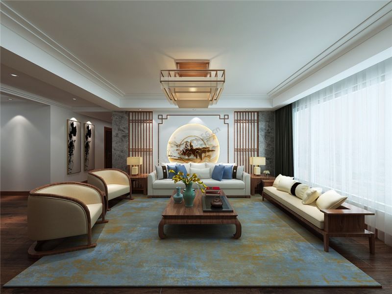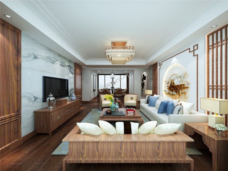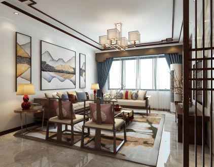 蓝色康桥A区二期156平新中式装修效果图风效果图