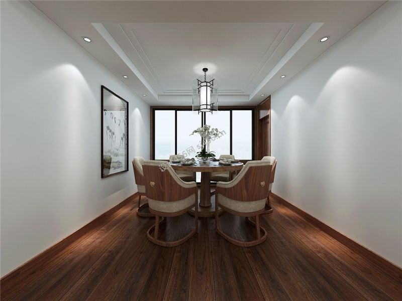 156平新中式风格四居餐厅地板装修图片