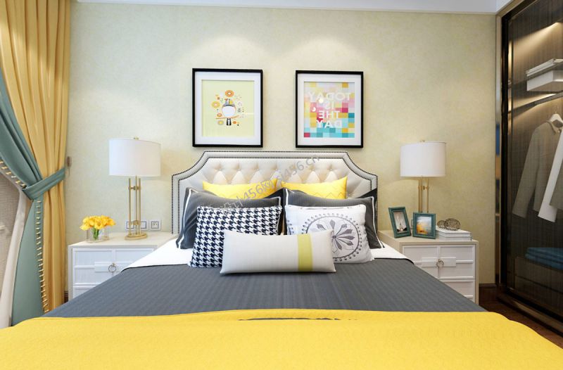 霞光府170平新中式风格卧室台灯设计效果图