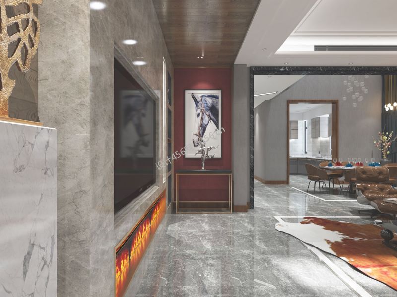 东方银座中心城350平现代别墅壁炉电视墙设计图
