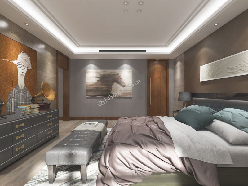 东方银座中心城350平现代别墅卧室床尾凳装修图