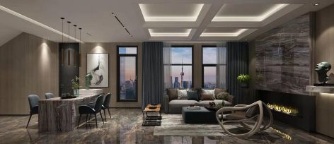 盘锦霞光府一号院138平顶楼现代轻奢装修案例风效果图