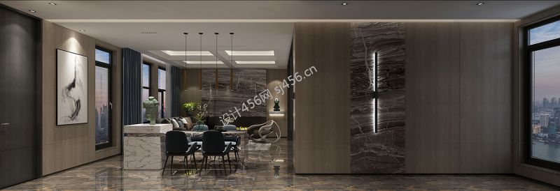 盘锦霞光府一号院138平顶楼现代轻奢装修案例风效果图
