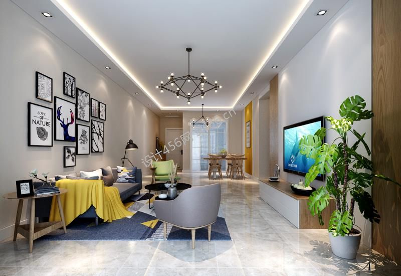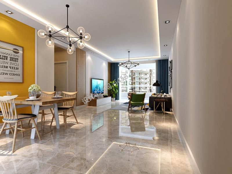 华发新城96㎡现代风格三室两厅装修案例风效果图