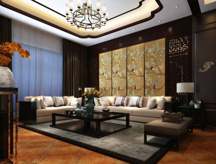 香水湖 300㎡ 中式风格装修案例风效果图
