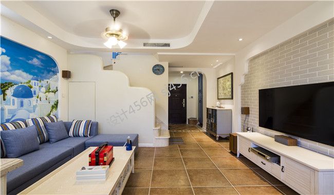 2020地中海复式客厅装修效果图 2020地中海客厅布艺沙发装修效果图
