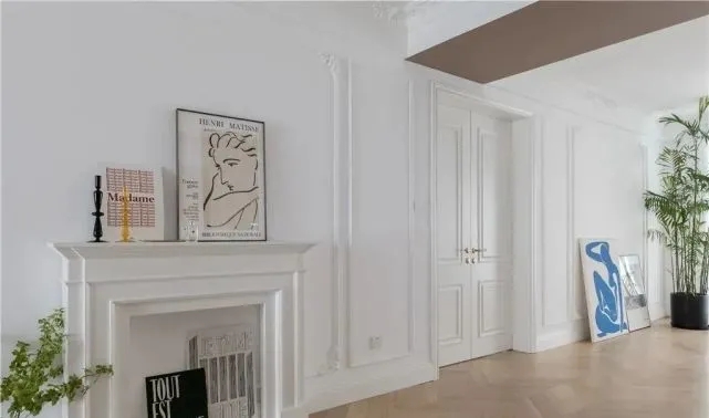 墙面顶面的优美石膏线条保证了视觉上的明净简约同时又带有一些灵动的变化