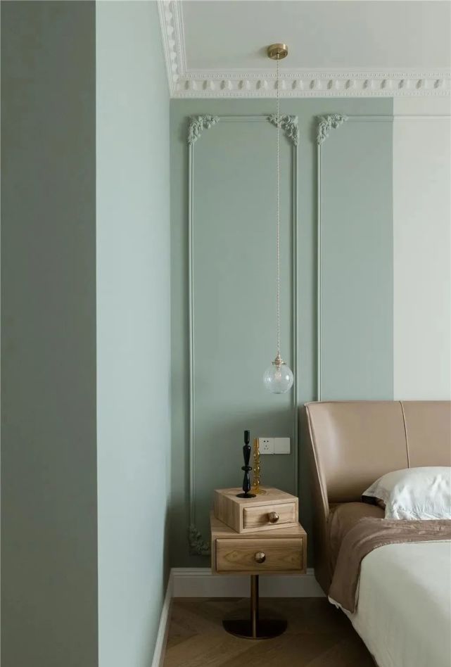 进入主卧整个空间采用的是经典的莫兰迪配色清新舒缓柔和