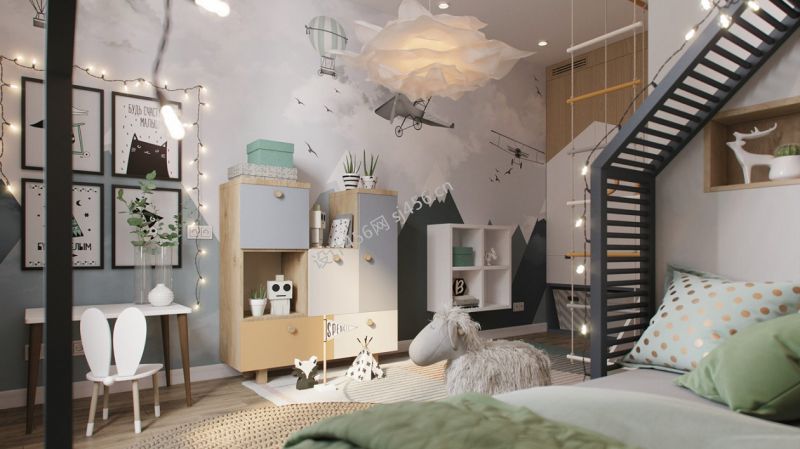 龙湖悠山郡122平北欧风格三居室装修案例风效果图
