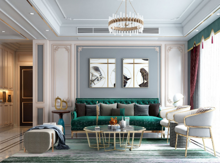 盛世华章轻奢风格130平米三居室装修案例风效果图