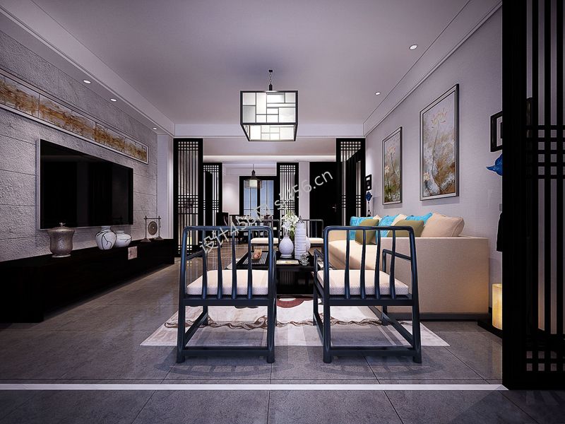 三室132平新中式风格客厅家装案例
