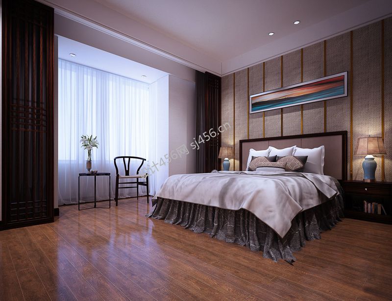 三室132平新中式风格卧室家装案例
