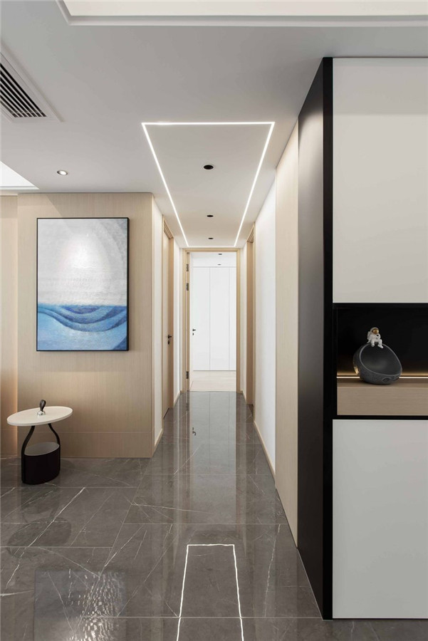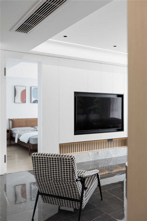 [青岛都市嘉园装饰]160㎡三居室现代简约,以木白为主,黑色作为点缀