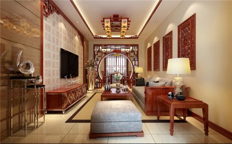 卓越西海岸新中式风格116平米三居室装修案例风效果图