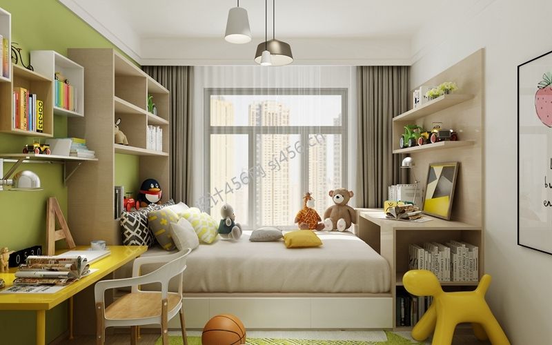 现代风格三居室100平米儿童房床装修设计图