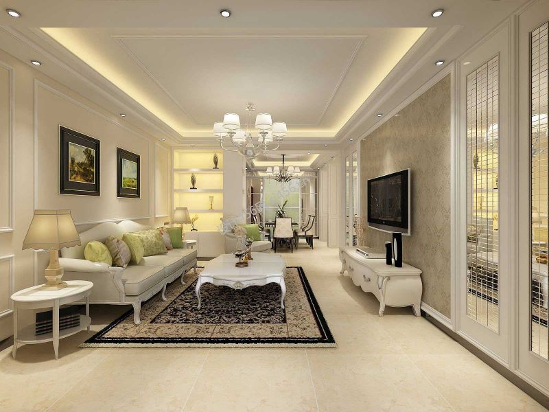 简欧风格137平米三居室客厅吊顶设计图