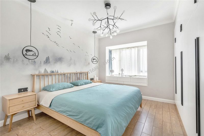北欧风格三居室118平卧室背景墙装修设计图