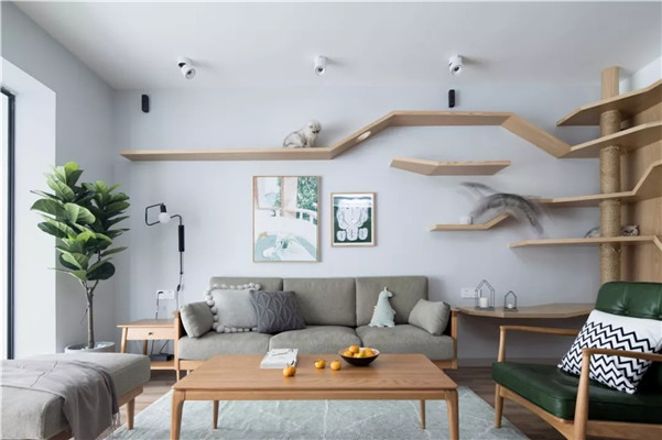如今,北欧风和极简主义依旧受到不少消费者的青睐,简约为主的客厅空间,最为省钱的做法就是直接不吊顶。