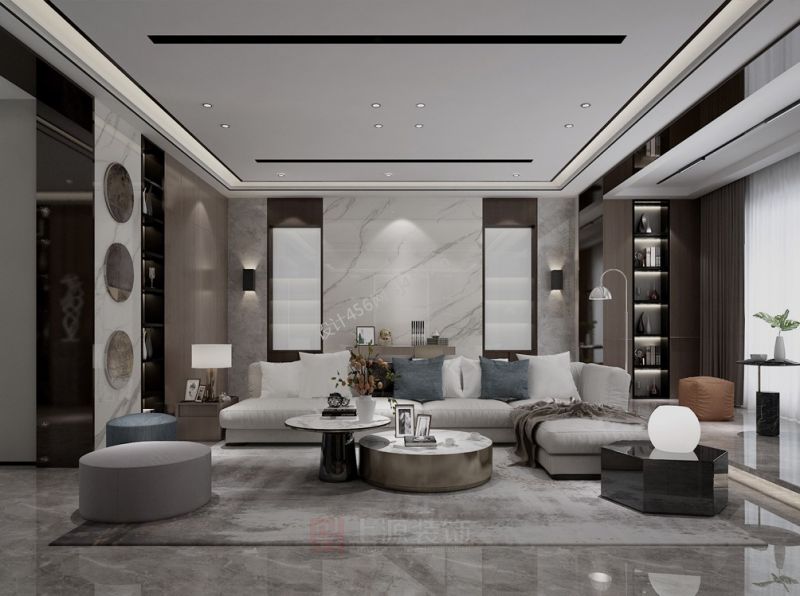 现代风格335平别墅客厅墙面装修效果图