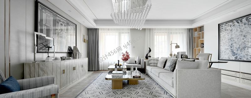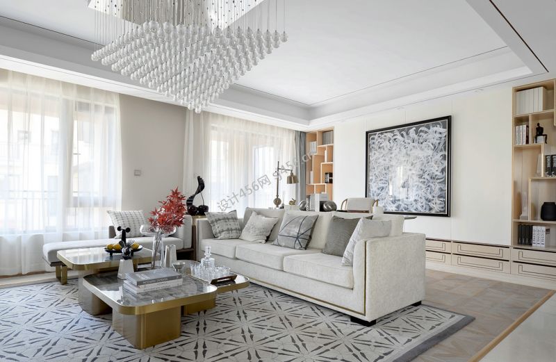 恒大金沙滩轻奢风格320平米别墅装修案例风效果图