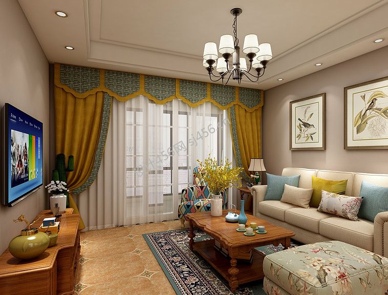 泰晤士小镇新中式风格135平米三居室装修案例风效果图