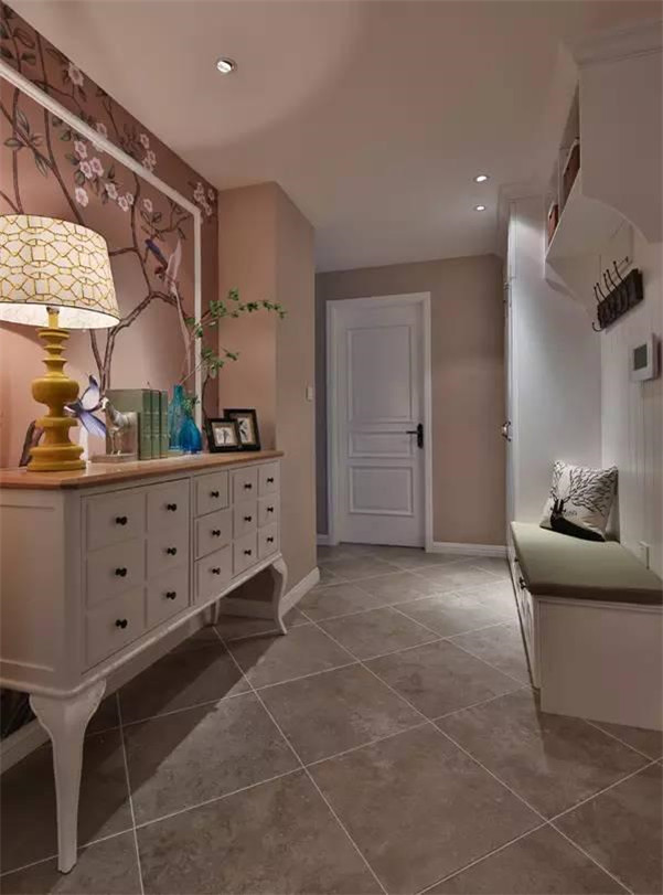 像是吊灯、窗帘、挂饰等物品则可以选择相对便宜的,因为是在外部,修理起来较为方便,时间长了想要换掉也不会太心疼。为了不让来客一眼就看到客厅,考量到实用及预算,用鞋柜代替玄关隔屏。虽然鞋柜的价格比玄关隔屏来得贵,但却比较实用,最重要也省了玄关隔屏的费用。