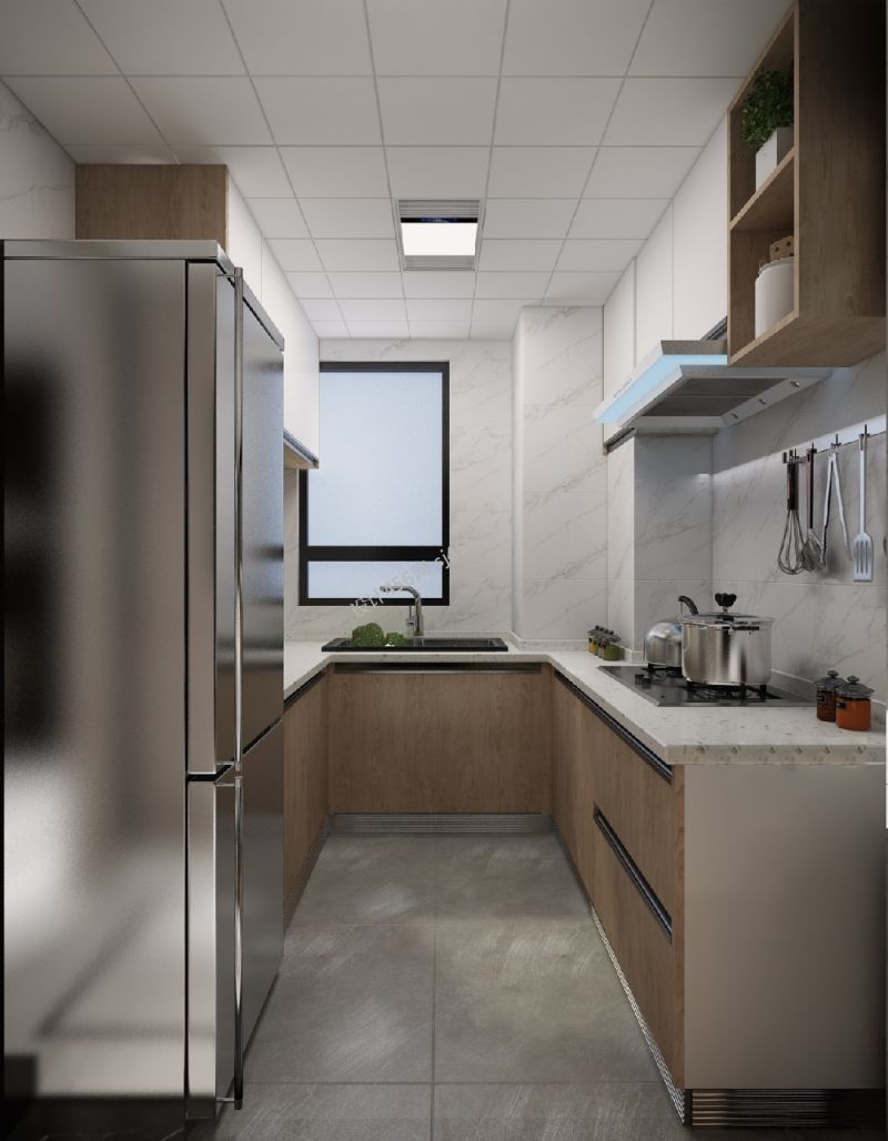 浮山后二小区现代风格102平米三居室装修案例风效果图
