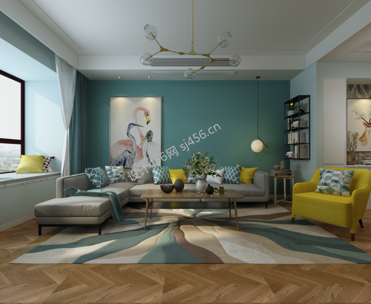 北欧风格136平3居室客厅墙面颜色装修效果图
