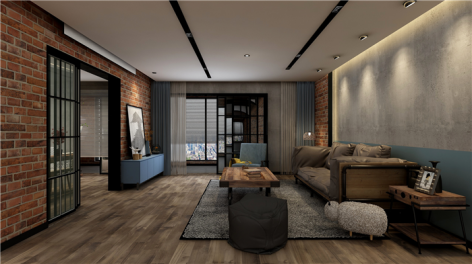 锦都家园工业风格134平米三居室装修案例风效果图