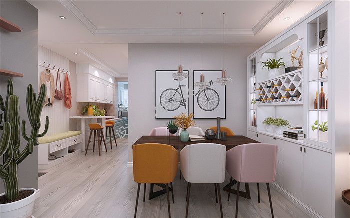 北欧风格三室115平餐厅餐桌装修设计图