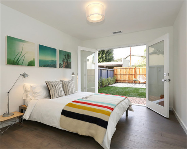 简单的纯色涂漆也是不错的选择,当然要注意和室内的总体风格一致。而床上用品的选择也符合背景墙的风格,才能让卧室统一不突兀。