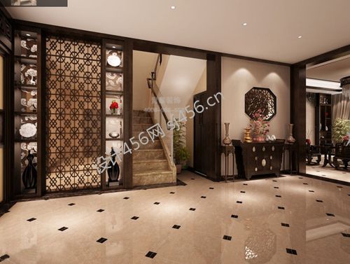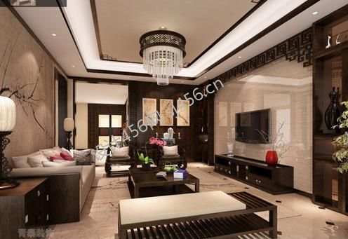 清华园复式200平中式风格客厅石材电视背景墙设计