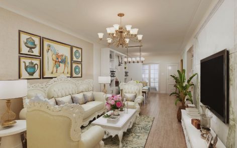 秀兰喜悦欧式风格112平米二居室装修案例风效果图