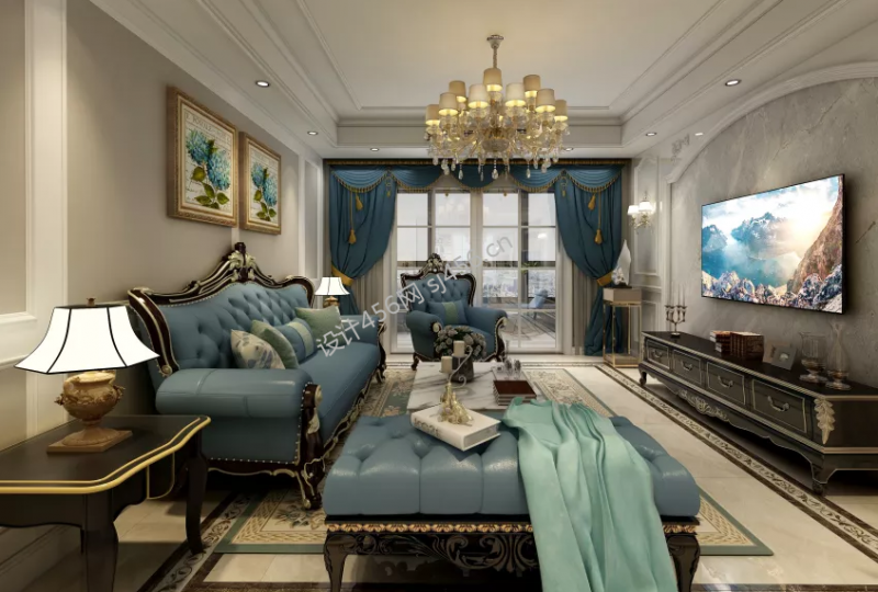 青特花溪地简欧风格136平米三居室装修案例风效果图