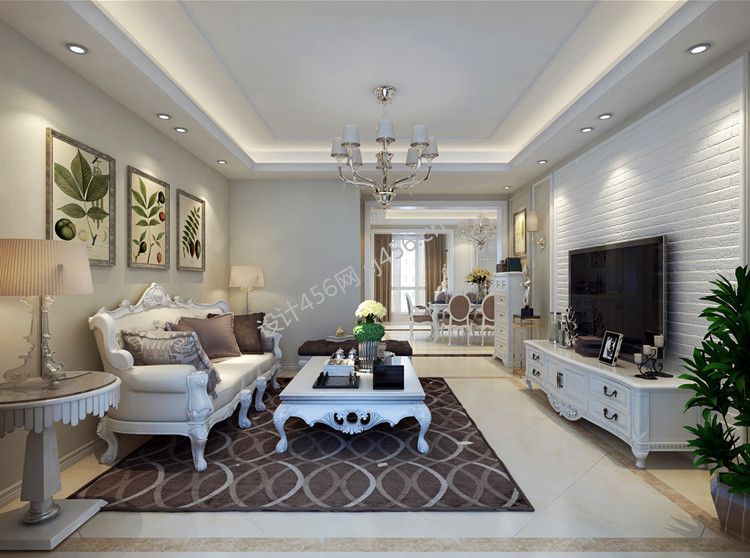 秀兰喜悦欧式风格112平米二居室装修案例风效果图
