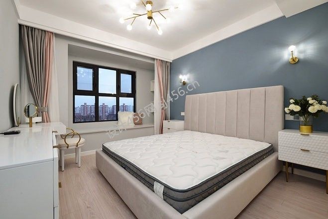 轻奢风106平米三居室卧室背景墙颜色装修效果图