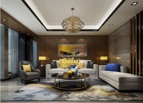 晓港名城轻奢风格220平别墅装修案例风效果图