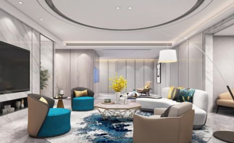 望海领域轻奢风格119平米三居室装修案例风效果图