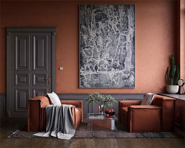 焦糖色的纯度较高,搭配高级灰可以降低纯度,让空间的效果更高雅。