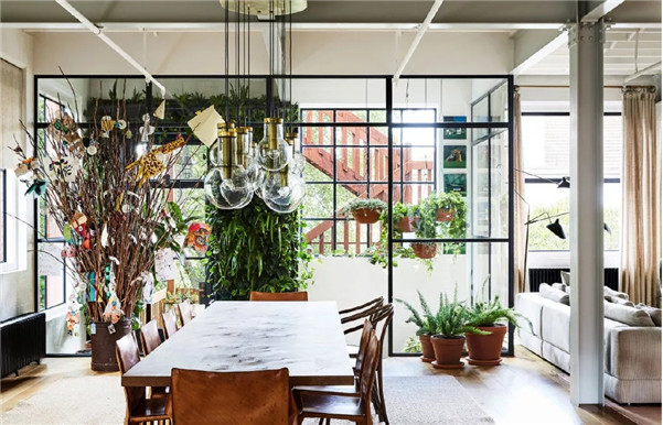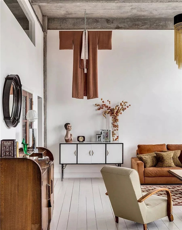 偏好冷淡风的家,不妨把焦糖色的使用面积浓缩、精炼加升华,比如一个层叠边几、一盏吊灯,照样可以清爽又迷离。