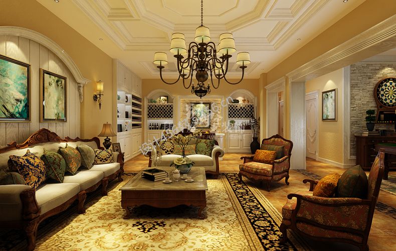 和达玺悦欧式风格450平米别墅装修案例风效果图