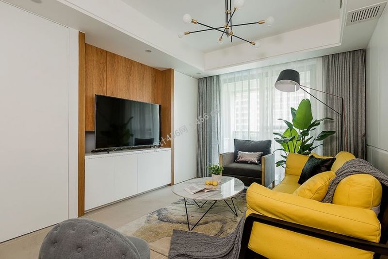 112平北欧风格三居室客厅电视背景墙装修设计图