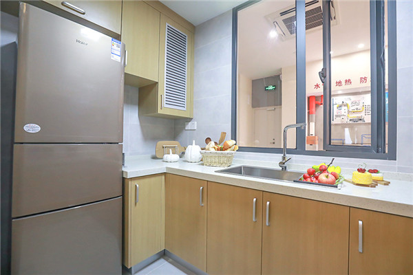 厨房采用的是U型厨房,墙面打满顶柜,地面打满橱柜,将储存空间充分利用上。