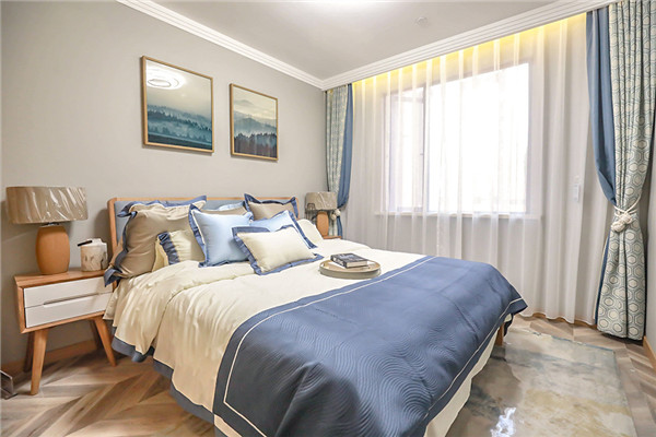 对于卧室的的设计上,主要是从“人”出发,首先考虑居住者的舒适感。