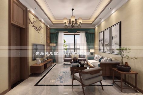 海尔山海湾新中式风格268平米别墅装修案例风效果图